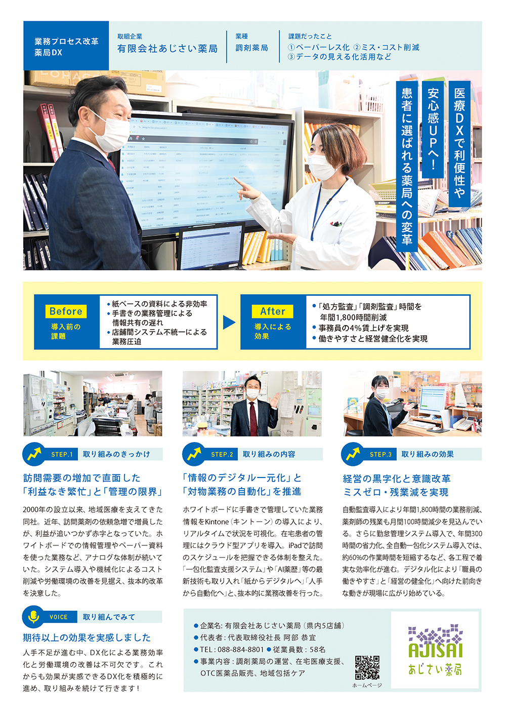 「利益なき繁忙」と「管理の限界」2000年の設立以来、地域医療を支えてきた同社。近年、訪問薬剤の依頼急増で増員したが、利益が追いつかず赤字となっていた。ホワイトボードでの情報管理やペーパー資料を使った業務など、アナログな体制が続いていた。システム導入や機械化によるコスト削減や労働環境の改善を見据え、抜本的改革を決意した。 -