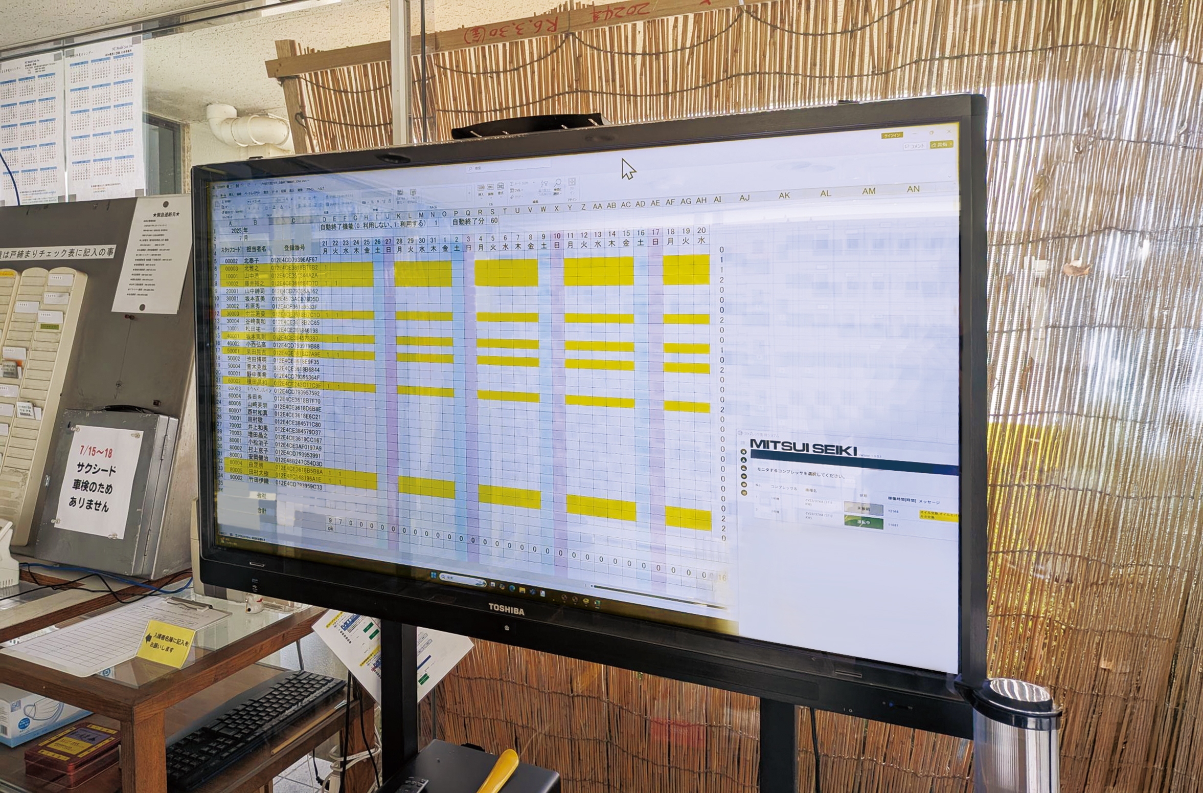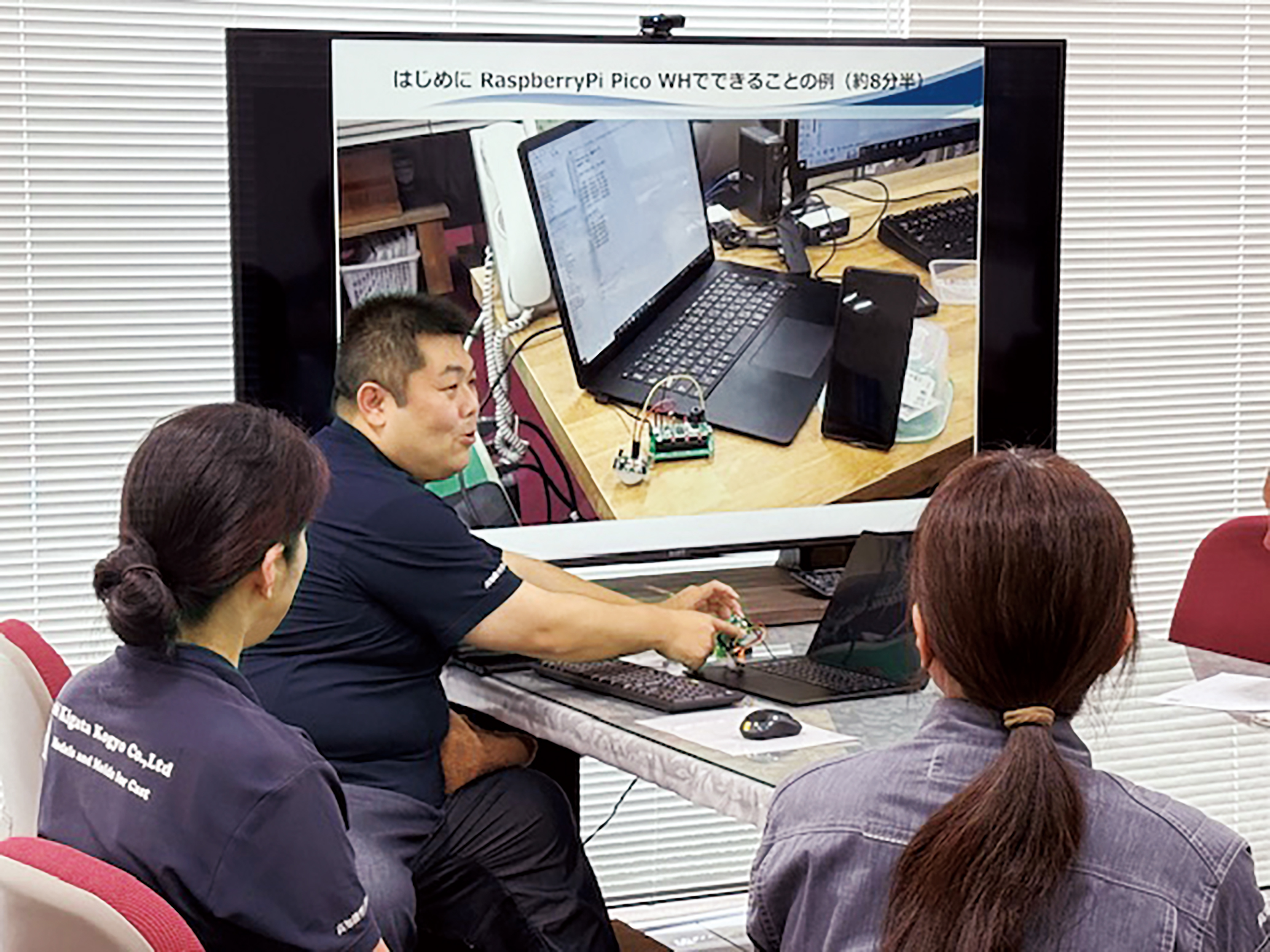 型製作や素形材調達といった定型業務をRPAの導入で自動化し、勤怠管理もクラウド化した。社内報や通達事項は複数の社内PCでサイネージ表示する仕組みを整え、さらにスマートコンセント導入により遠隔での電源管理を実現。アナログ運用だった社内放送を自社開発でデジタル・自動化するなど、現場の効果を実感できる取り組みを重ね、現場の信頼獲得に努めてきた。